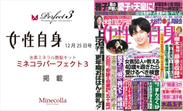 女性自身 12月25日号」にミネコラパーフェクト3が掲載されました。